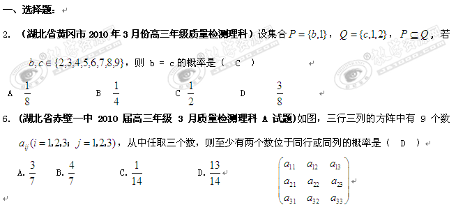 湖北省各地市2010年高考数学最新联考试题分类大汇编(13)概率