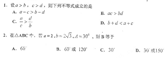 吉林市普通高中10-11学年高二上学期期中模块教学质量检测(数学理)扫描版