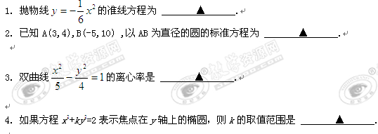 江苏省靖江高级中学10-11学年高二上学期期中调研试卷(数学理)