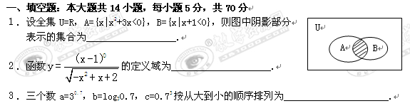 江苏省泰州中学10-11学年高一上学期期中考试(数学)