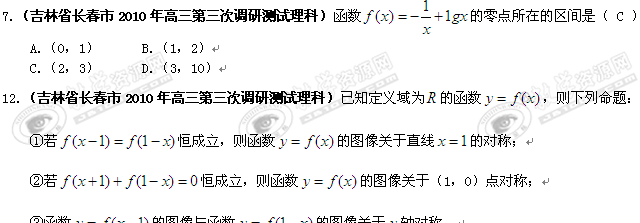 [精题分解]函数与导数(吉林地区)