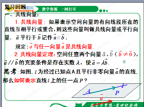 数学:3.1.2《共线向量与共面向量》课件(新人教B版选修2-1)