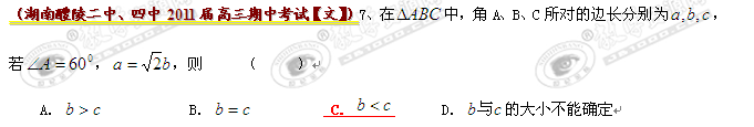全国各地市重点名校2011届高三上学期期中考试精选38套分类汇编-----解三角形
