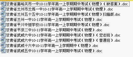 打包下载:甘肃省各学校10-11学年高一上学期期中考试(物理)(共10个)