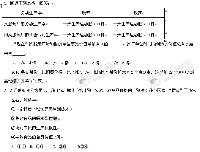 山西省霍州一中2011届高三上学期期中考试(政治)