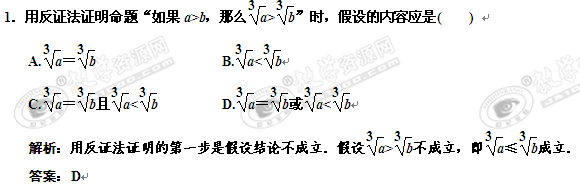 2011届高考数学一轮复习随堂演练:11.3直接证明、间接证明与数学归纳法