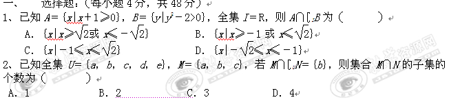 四川省江油市太白中学10-11学年高一上学期期中考试(数学)