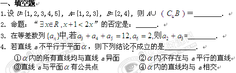 江苏张家港市后塍高中2011届高三上学期期末复习(1)(数学)