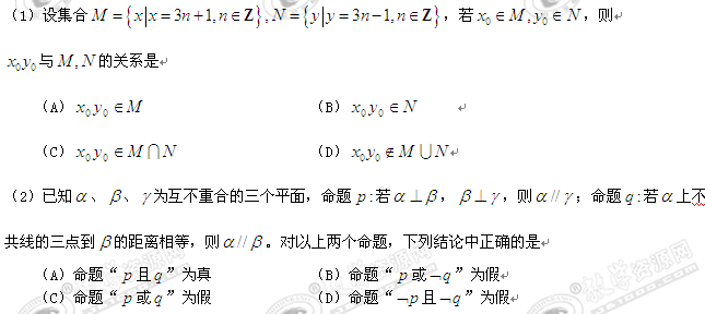 辽宁省丹东市四校协作体2011届高三上学期第二次联合考试(数学理)