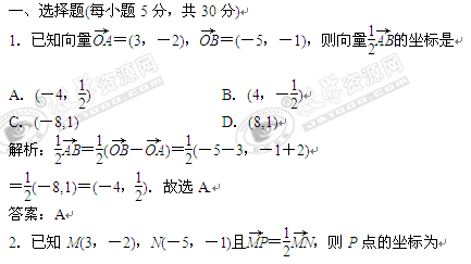 2011年高考数学一轮复习第5章平面向量:平面向量的坐标运算