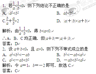 2011年高考数学一轮复习第6章不等式:不等式的概念与性质