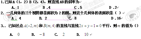 甘肃省嘉峪关市一中10-11学年高一上学期期末考试(数学)缺答案