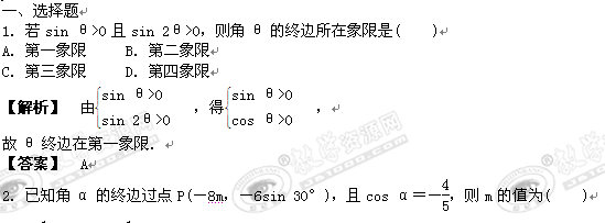 数学:3.1《任意角的三角函数》课时训练(北师大版)
