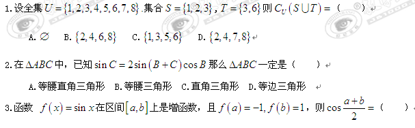 山东省烟台市2011届高三上学期期末考试试题(数学文)