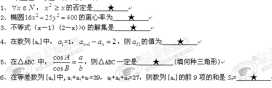 江苏省连云港外国语学校10—11学年高二上学期测试题(数学)