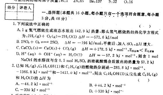 河南省洛阳市10-11学年高二上学期期末考试(化学)(扫描版无答案)