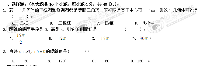 湖南省邵阳市二中10-11学年高一上学期期末考试(数学)