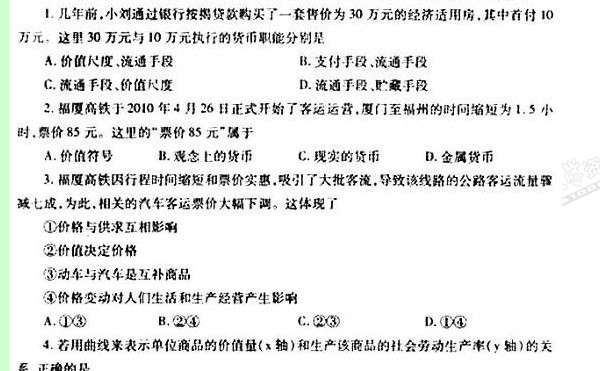 福建省福州市10-11学年上学期高一期末模块测试(政治)扫描版
