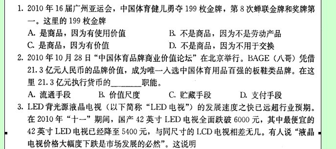 河北省保定市10-11学年高一第一学期期末调研(政治)扫描版