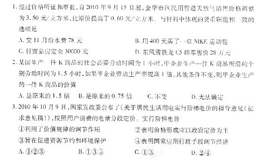 浙江省金华十校10-11学年高一上学期期末考试(政治)扫描版
