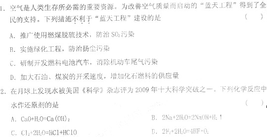 江苏省盱眙中学10-11学年高二上学期期末考试(化学)(扫描版)