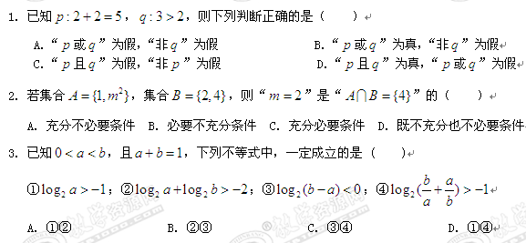 安徽省抚州市10-11学年高二上学期期末调研试题(数学理A卷)