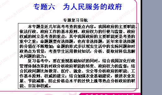 政治:2011年高三二轮复习专题六《为人民服务的政府》课件