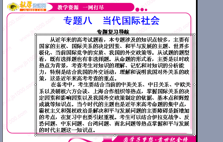 政治:2011年高三二轮复习专题八《当代国际社会》课件