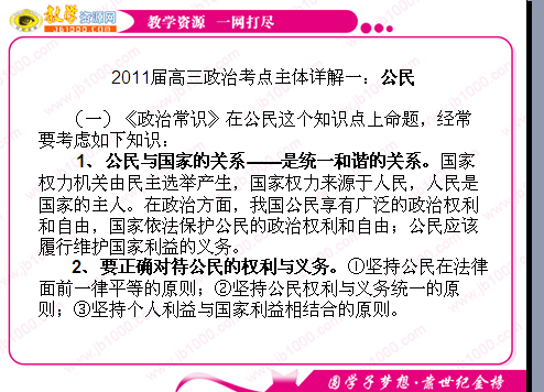 2011届高三政治考点主体详解一:公民