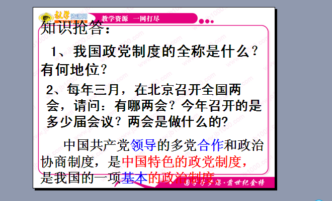 政治:3.6《我国的政党制度》课件2(新人教必修2)