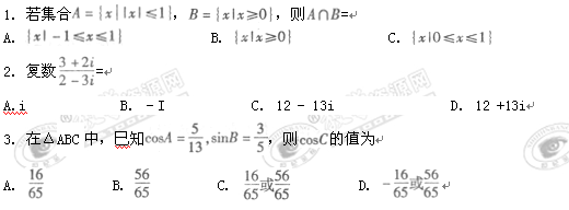 湖北省武汉市2011届高三下学期二月调研测试(数学理)