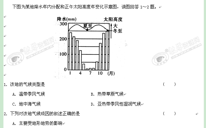 陕西省西安市2022届高三下学期第七次模拟考试试题(文综 扫描版 无答案)