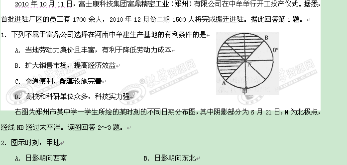 2011年普通高等学校招生全国统一考试广东卷模拟试卷(五)(文综)