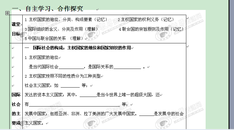 政治:4.8.1《国际社会的成员:主权国家和国际组织》学案(新人教版必修2)