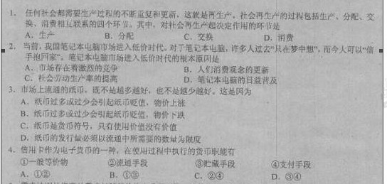 福建省福州三中10-11学年高一上学期期末考试(政治)扫描版