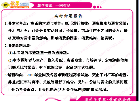 2011届高三二轮复习课件专题一:生活与消费