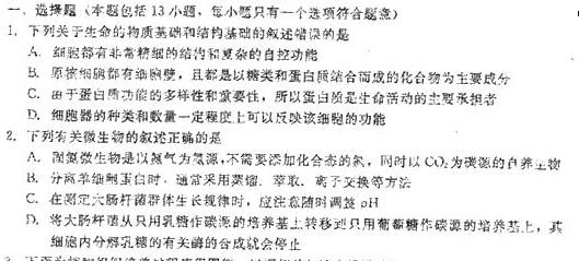 四川省乐山市高中2011届高三上学期第一次调研考试(理综)扫描版