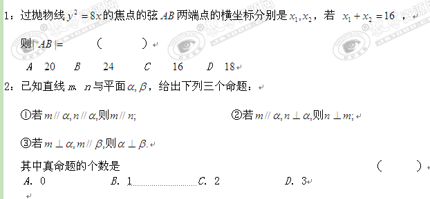 甘肃省金昌四中10-11学年高二上学期期末试题(数学)缺答案