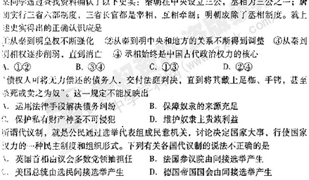 山东省潍坊市2011届高三第一次模拟考试历史试题(扫描版,无答案)