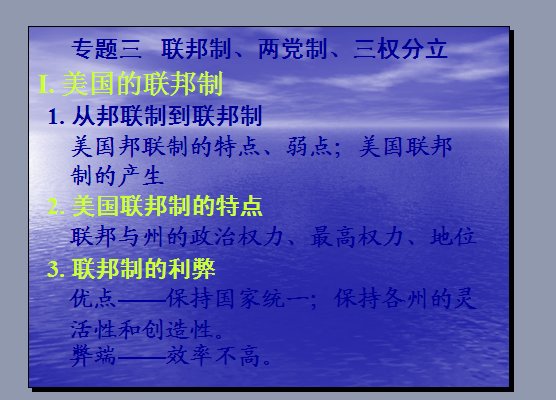 政治:专题三《联邦制、两党制、三权分立——以美国为例》课件(新人教选修3)