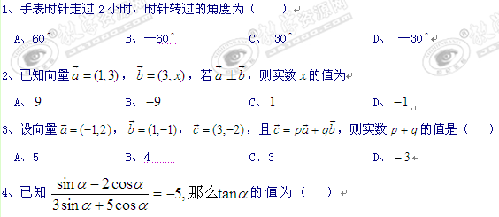 浙江省瑞安市安阳高级中学10—11年高一下学期第一次月考(数学)