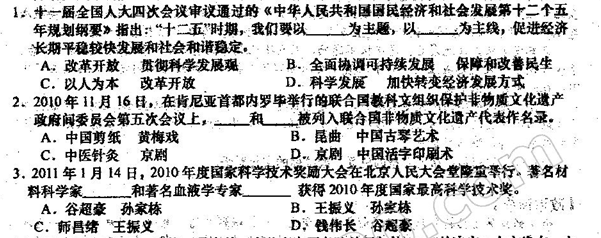 2011盐城二调试题(政治)(有答案)