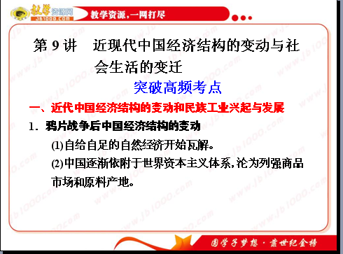 2011届高三历史二轮复习课件:专题三 第9讲 近代中国经济结构的变动与社会生活的变迁(人教新课标)