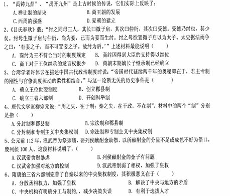 湖南省平江一中10-11学年高一上学期期中考试试题(历史)(扫描版,无答案)