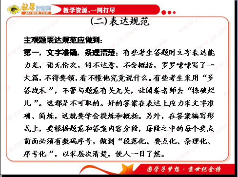 2011届高三历史二轮复习课件:主观题答题规范 (二)表达规范(新课标版)