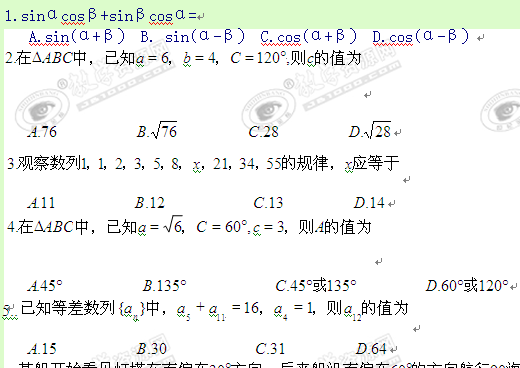 四川省攀枝花市米易中学10-11学年高一下学期4月月考(数学文)缺答案