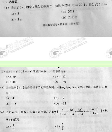 云南省2011届高三第二次毕业生复习统一检测(数学理)扫描版