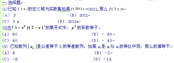 云南省2011届高三第二次毕业生复习统一检测(数学理)