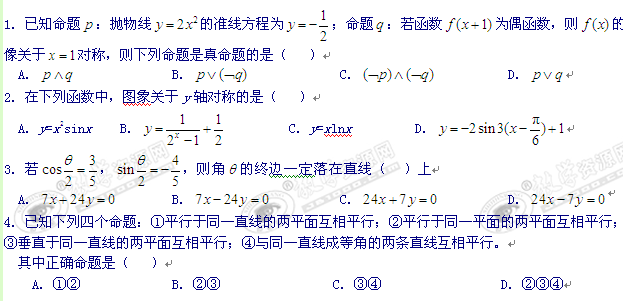 四川省成都外国语学校2011届高三下学期4月月考(数学理)