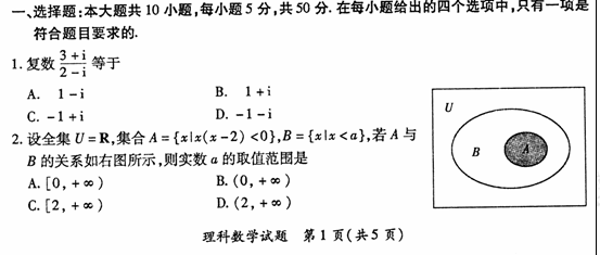 福建省2011届高三高中毕业班质量检查试卷(数学理)扫描版